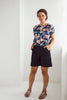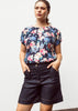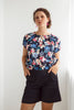 The much loved classic repeat Dalston Izzy Top style in jnavy floral cotton. Featuring an elastic ruffle at the crew neck, sleeves and hem. Izzy is a relaxed fit to match back with skirts, pants or shorts.