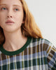 Knit from soft organic cotton, featuring a seasonal check pattern with drop shoulders and a boxy silhouette. Contrast forest-green ribbing at the neck, cuffs, and hem adds a refined finish to its relaxed, everyday shape.