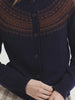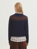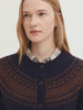 Discover the perfect excuse to layer with this delightful wool blend Greca cardigan from Nice Things. Boasting a striking jacquard fairisle pattern inspired by Greek design. The relaxed round and buttons up the front this classic navy cardy with rich chocolate contrast pattern brings style that's as playful as it is practical.