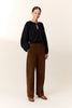 Designed to reveal the relaxed attitude typical of Leon & Harper, the Pamira PLN trousers feature a wide volume and a structured high waist. Their 100% organic cotton corduroy offers a pronounced texture, enhanced by belt loops, a button closure, and practical side pockets. At the back, two welt pockets, each secured with a button, complete the finish. This model pairs perfectly with an oversized sweater or a flowing shirt to create a contemporary silhouette.