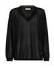 Stunning Mos Mosh black blouse with v-neck and cool details at the neckline and cuffs. It's designed in a relaxed fit and glitters beautifully when it catches the light. It's a bit see-through, so we recommend styling it with a singlet underneath. We think it looks amazing with jeans or with a cool tailored suit.