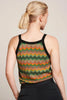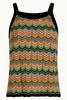 The King Louie Sophie top is a high-neck tank top in multicolour zig zag pattern with ribbed contrast black edge finishing.