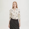 Introducing the Nice Things Basic Shirt #98—a sustainable crinkled cotton number that's anything but ordinary. Featuring a charming cross-stitch print on a soft ecru base, this shirt brings a touch of handcrafted whimsy to your everyday wardrobe. The mandarin collar on a v neck and mother-of-pearl buttons add a subtle luxe touch. Long sleeves sport practical vents and cuffs for effortless style.