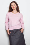 Featuring front pockets with scallop edged front pockets topstitched in contrast gold thread and a concealed back zip.