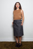The Dalston washed-look black denim Sara skirt is a just below the knee length.