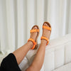 We recommend spraying these sandals with a waterproofing spray prior to first wear to protect and clean with a soft cloth.